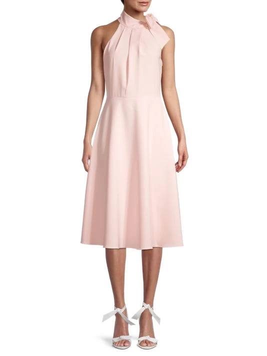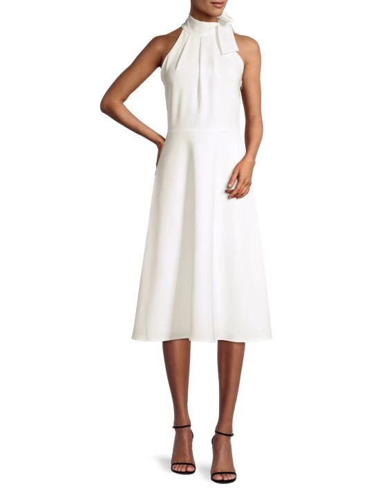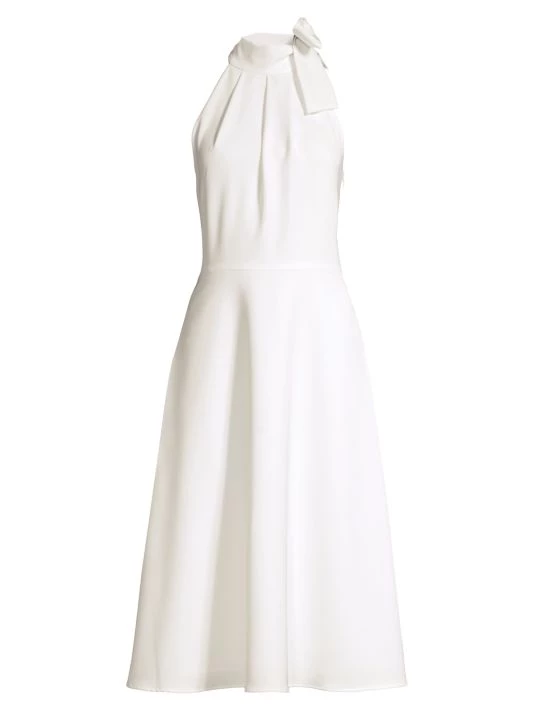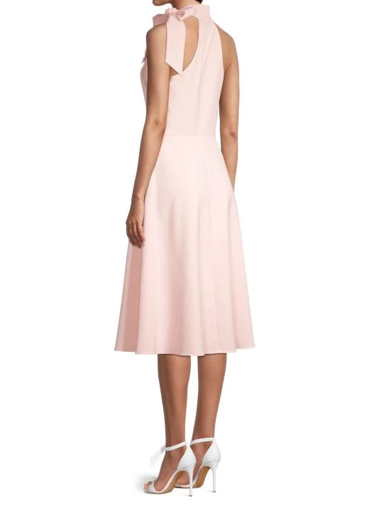 Ultra-feminine dress defined by a sweet toe collar and demure mid-length cut.
