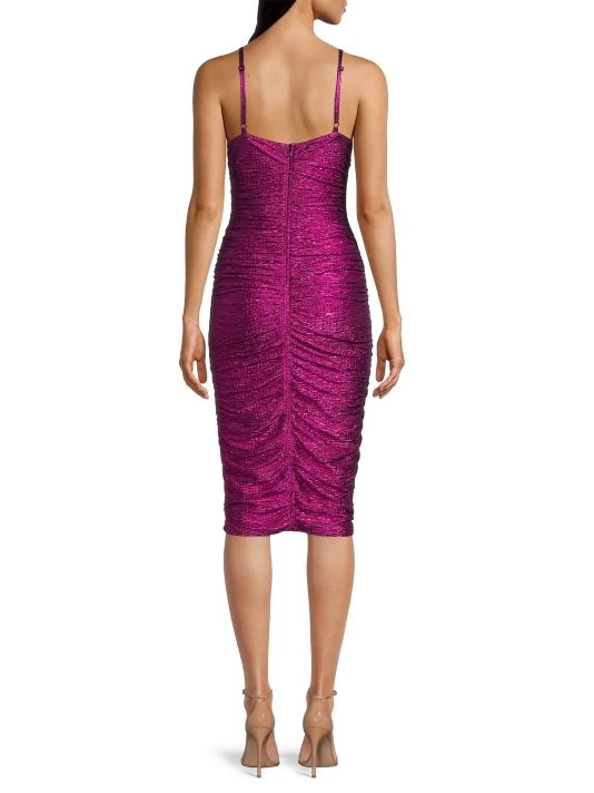 This metallic bodycon dress is finished with all-over ruching.