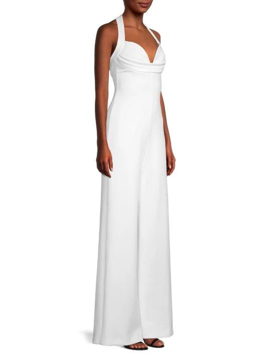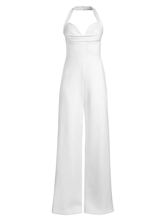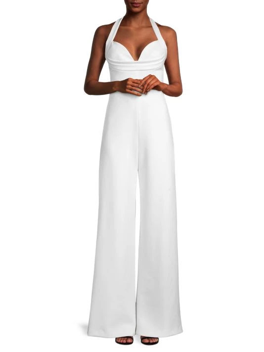 This wide-leg halter jumpsuit from LA-based Black Halo features a retro-inspired sweetheart bodice.