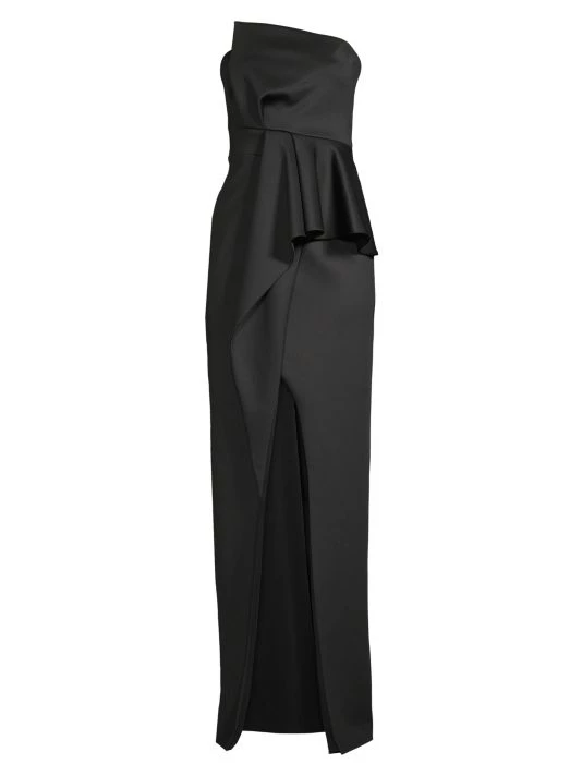 From the Eve by Laurel Berman Collection. Capturing asymmetry in the neckline and bodice, this elegant gown finishes on a daring slit.