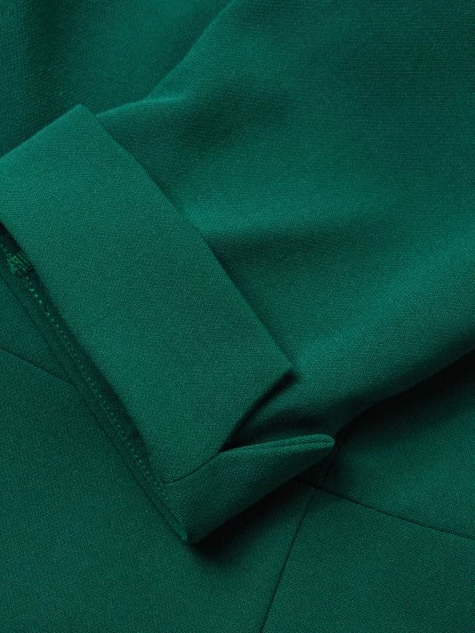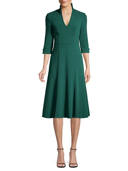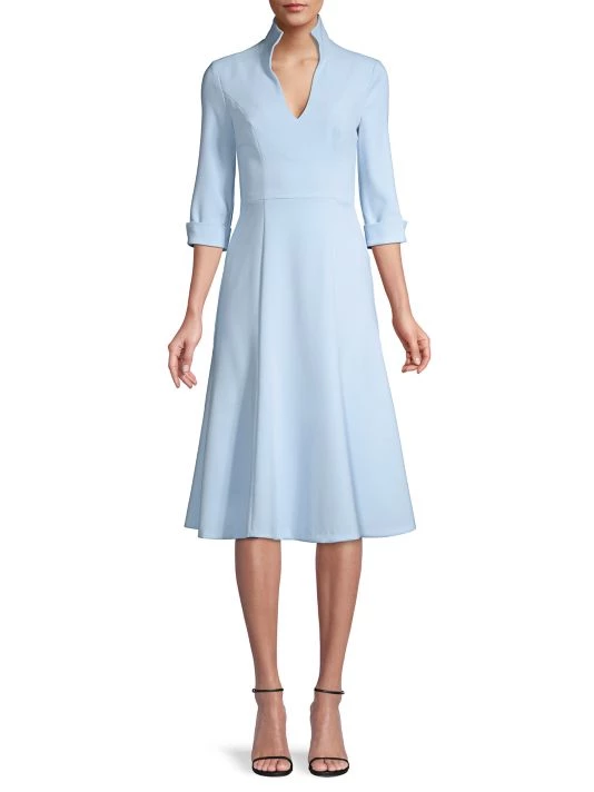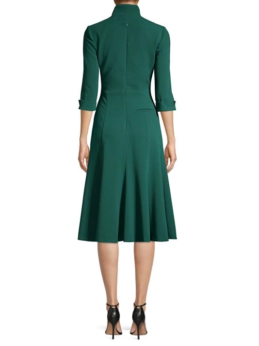 A split stand collar and folded cuffs emphasize the smart look of this fit-and-flare that’s tailored in cut.