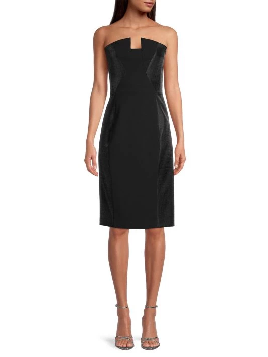 Art Deco-inspired lines and glittery side panels come together on this stunning sheath dress for statement style.