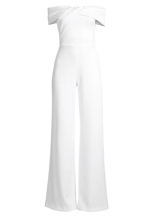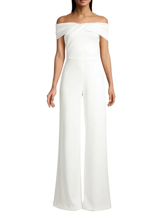 From the EVE by Laurel Berman Collection. Satin jumpsuit with a sultry neckline and on-trend wide leg.