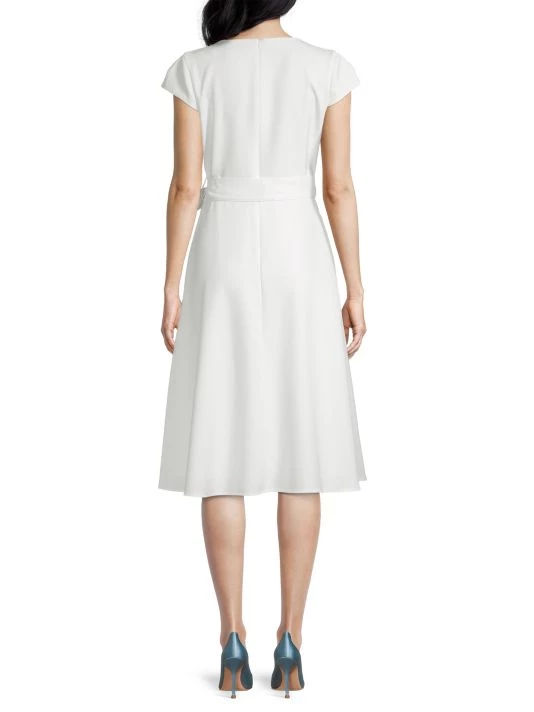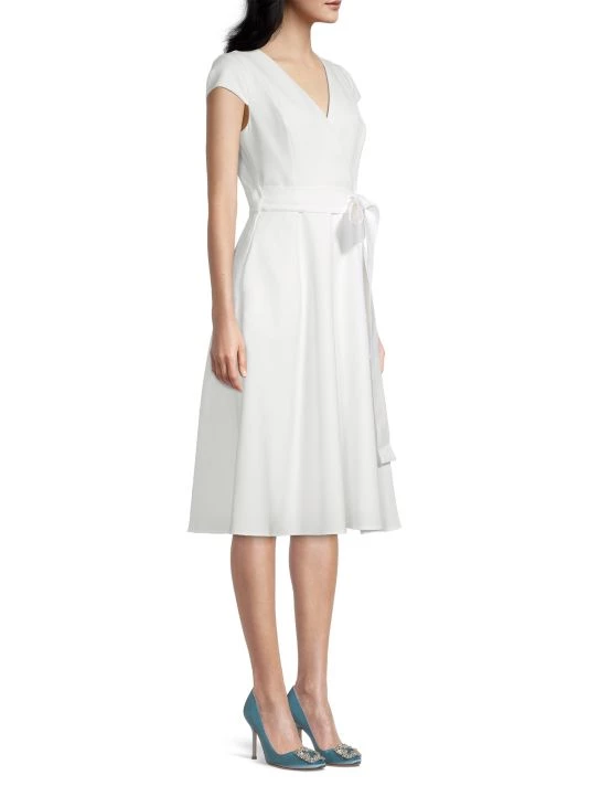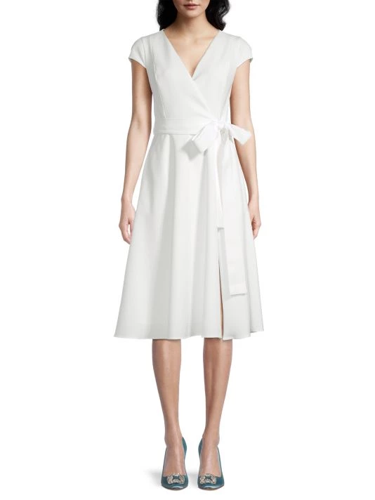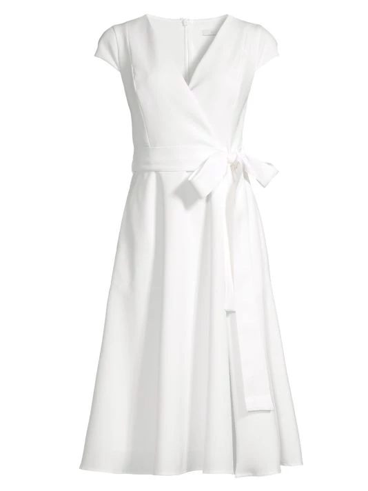 Cut in a wrap silhouette, Black Halo’s Pandora midi-dress is complete with a tonal sash belt. This piece’s cap sleeves offer delicate styling.