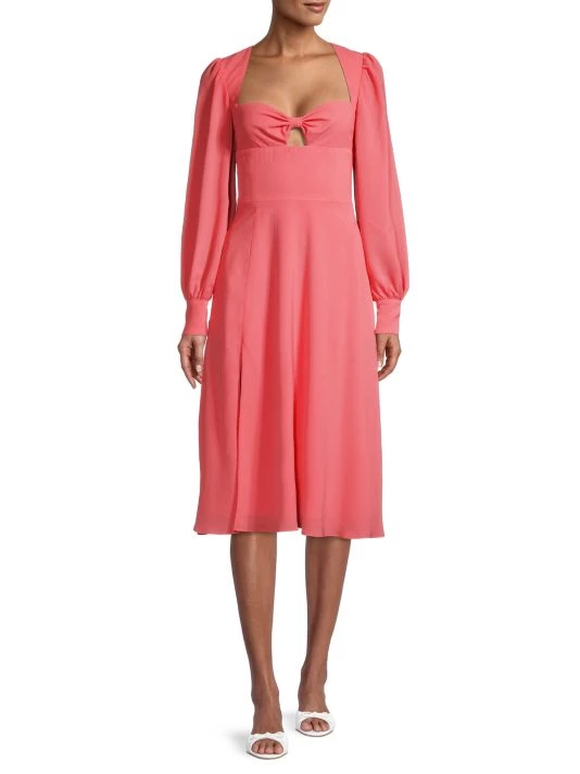 The Romina midi-dress from Black Halo is finished with long puff-sleeves.