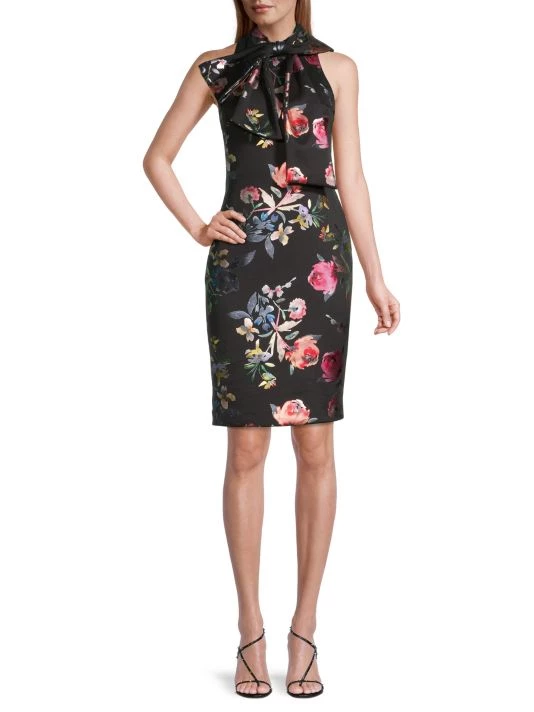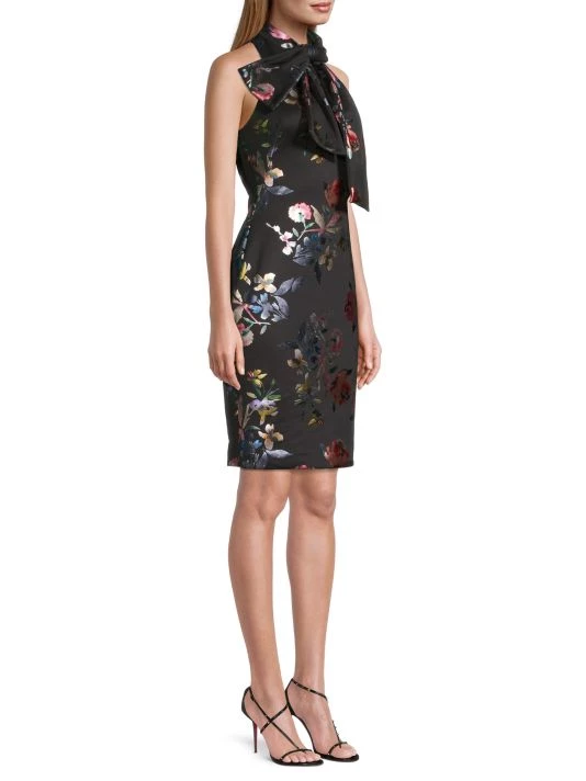 From the Eve by Laurel Berman Collection. Crafted of floral printed fabric, the Von sheath dress by Black Halo is designed in a fitted silhouette with a high neckline.