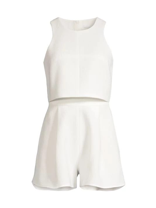 From the Black Halo x Laurel Berman Collection. This pebbled crepe two-piece Sanibel romper pairs a sleeveless, slightly cropped top with pleated high-waist shorts.