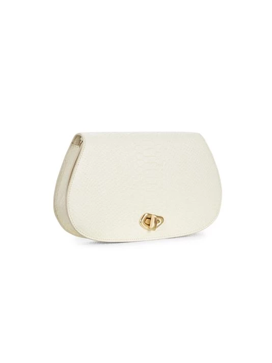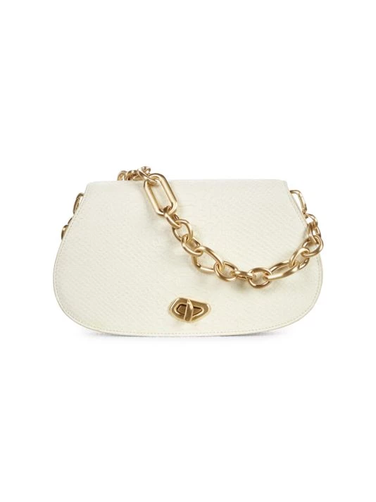 Snakeskin-embossed leather bag in a timeless saddle bag silhouette with a gleaming goldtone shoulder chain.