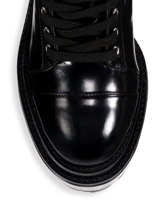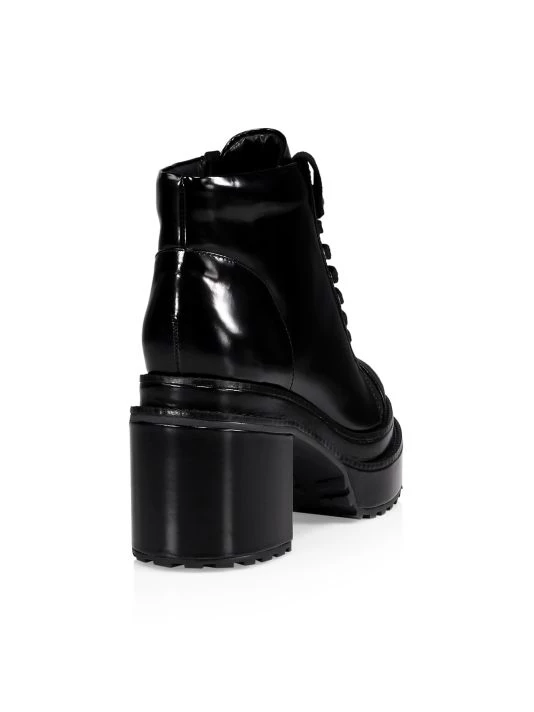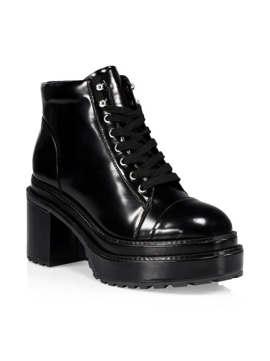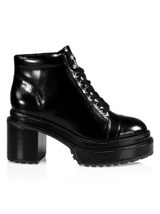 Mounted on a lugged block heel and platform, these ankle boots are rendered in smooth leather with a polished finish.