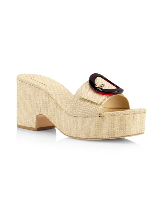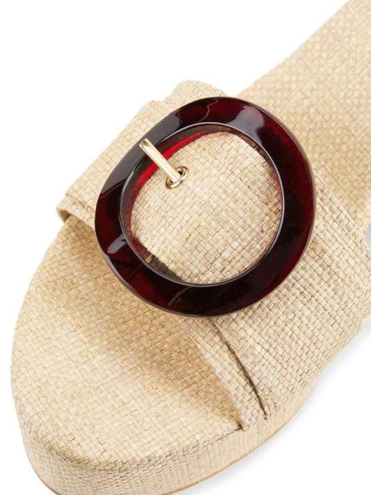 Anchored by a platformed block heel, Cult Gaia’s Cleia sandals are highlighted with a round lacquered buckle.