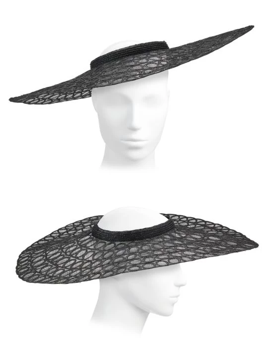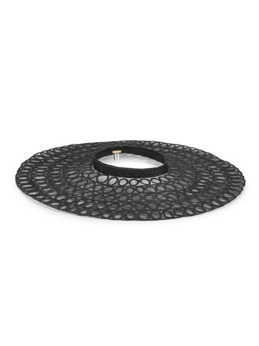 Cult Gaia’s Desa visor is composed of spiraling natural woven shapes in five concentric circles around the banding.