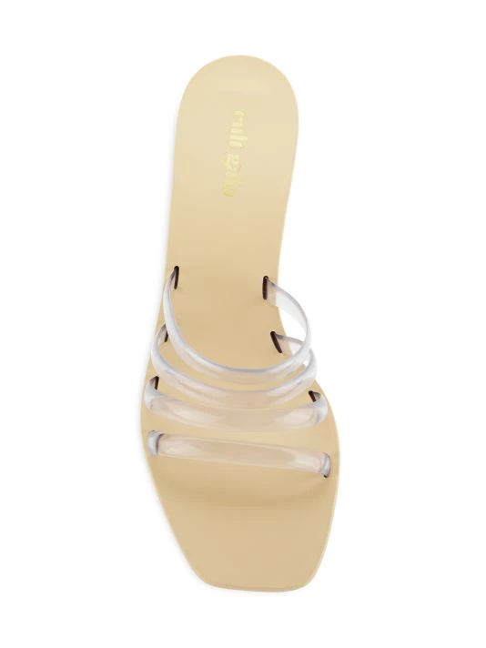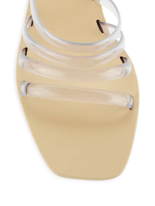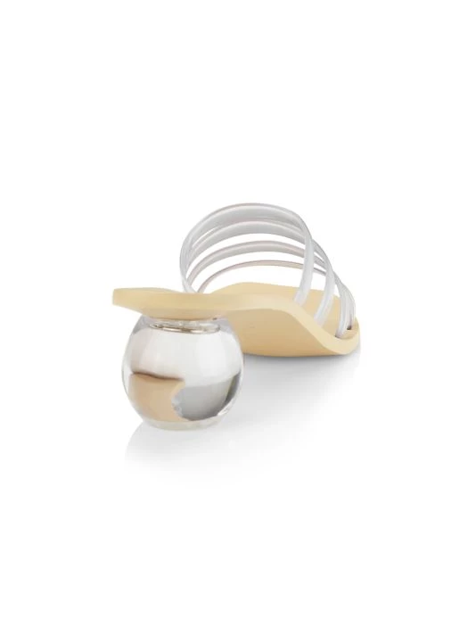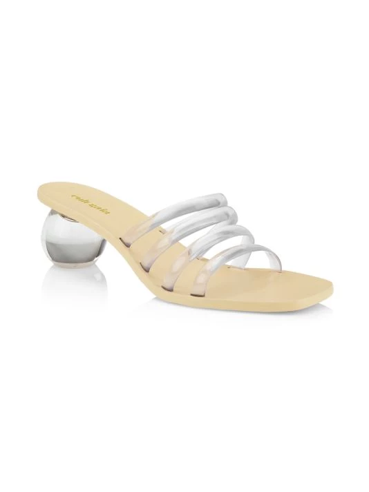 Anchored by a hand-carved spherical heel, Cult Gaia’s Jennee sandals feature a slim sole complemented by vinyl straps.