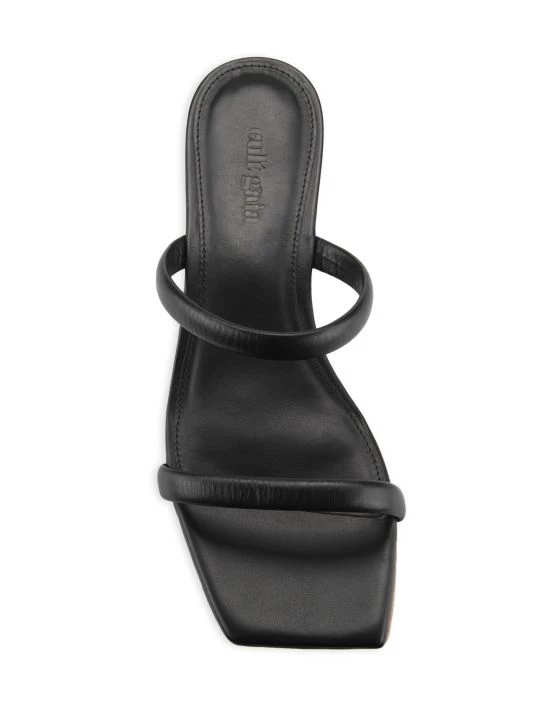 Featuring a minimalistic design and nature-inspired bamboo effect heel, Cult Gaia’s Liz mules boast smooth leather straps.