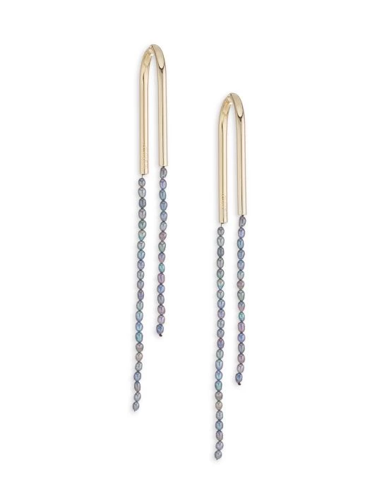 Dual-end drop earrings with freshwater cultured pearls and goldtone bars.