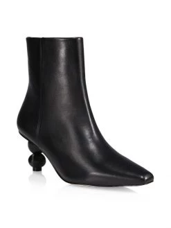 Cult Gaia Daylee Leather Sculptural-Heel Ankle Booties Camel